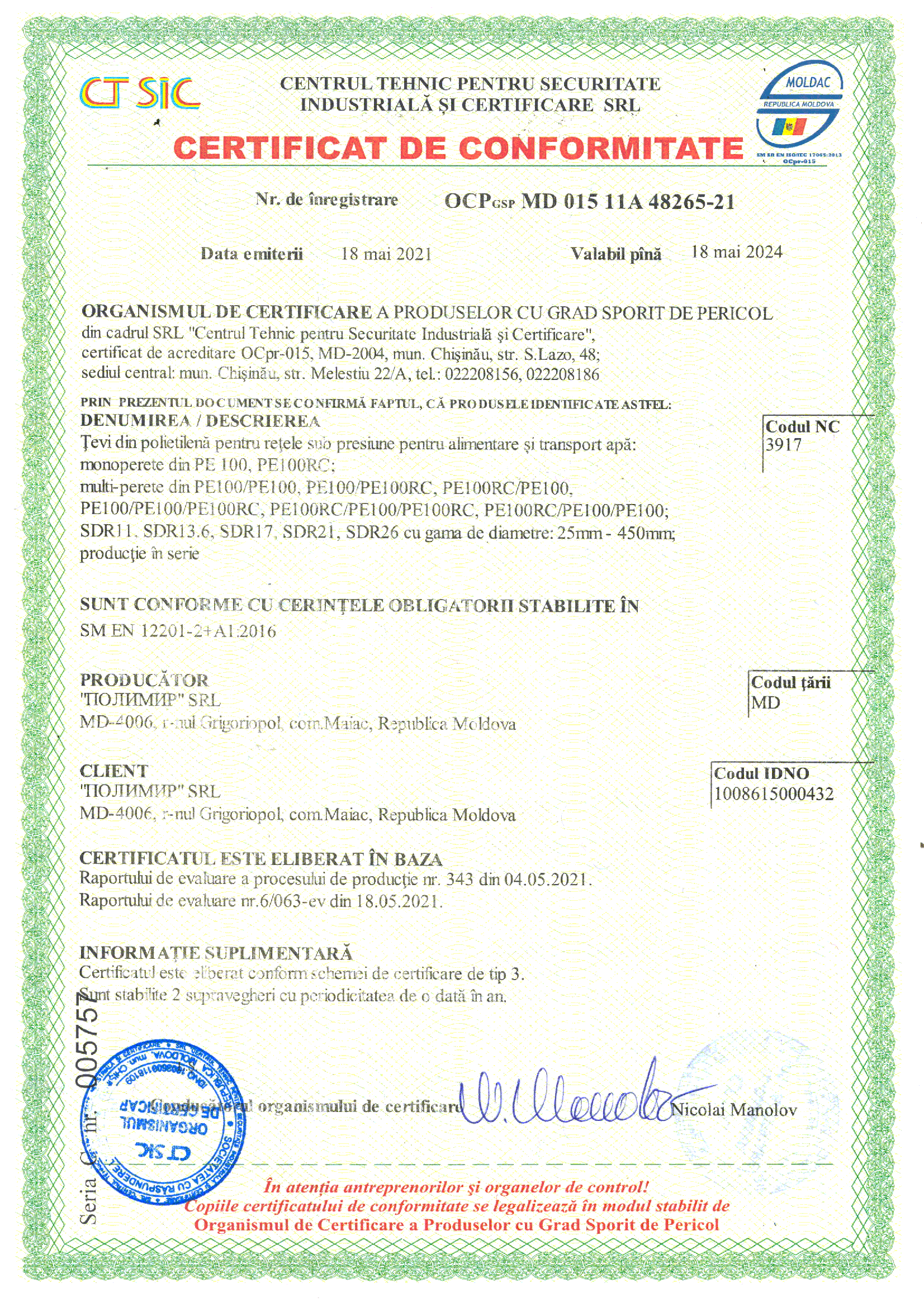 pentru conducte de presiune din polietilenă pentru sistemele de alimentare cu apă